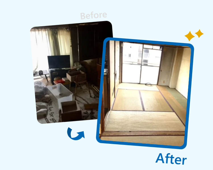ご遺族様からのご依頼で、遺品整理をお手伝いさせていただきました。20年以上お住まいだったご自宅には、大量の写真や、娘様が幼稚園の時に書いたお手紙などがあり、娘様にも喜んでいただけました。また、テレビや掃除機、冷蔵庫など、買取可能なものは買取させていただき、費用面でも精神面でもお客様にご満足いただける結果となりました。