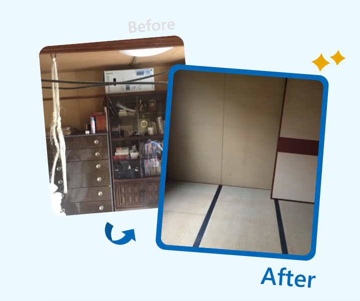 市の収集サービスでは、家の中まで来てくれないため、運び出しはご自身で行う必要があります。女性世帯で力仕事が難しいとのことで、タンスなどの運び出しや不用品回収をお手伝いさせていただきました。また、買取対象のコピー機や書籍もあり、不用品回収の総額から相殺する形でご提案したところ、大変喜んでいただけました。重くてご自身では運び出せない粗大ゴミの処分も、ぜひお任せください!