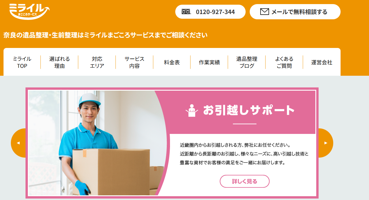 遺品整理・生前整理のミライルまごころサービスは、関西一円を中心に遺品整理・遺品処分を心を込めて行う専門業者です。故人様が遺された品々の整理にお悩みの方に、信頼できるサービスを提供します。ご依頼主様やご遺族様の心に寄り添い、品物の仕分けから合同供養、権利書の捜索や特殊清掃まで、遺品整理のプロが24時間365日丁寧に対応します。