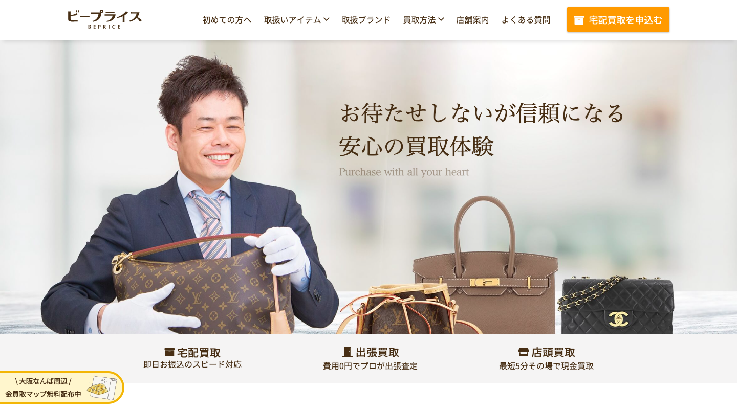 ビープライスは、「安心して利用できる」「納得して売却できる」「査定だけでも気軽に利用できる」など、お客様満足を第一に考えたお店作りを目指しているブランド品専門の買取店です。