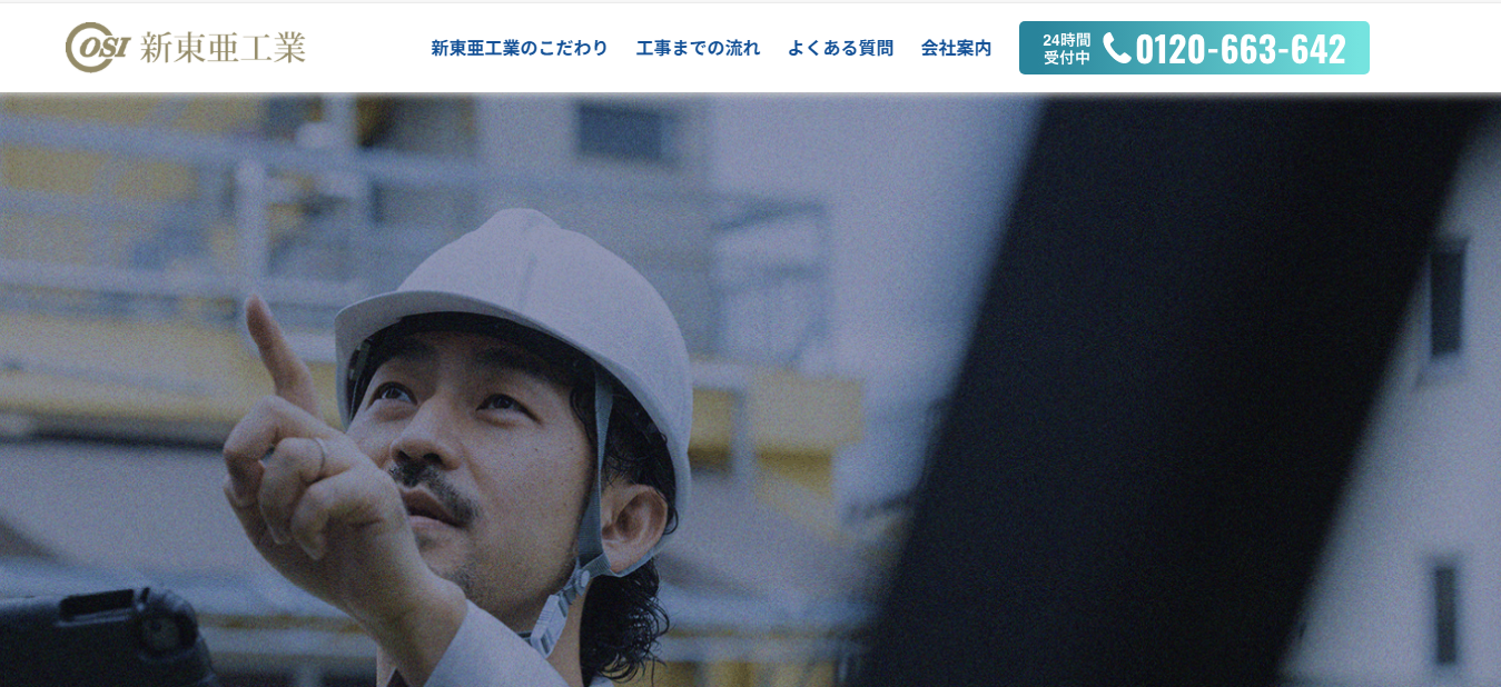 公式サイト:大阪で大規模修繕工事・防水工事・外壁塗装工事なら新東亜工業 – マージン0 絶対の自信