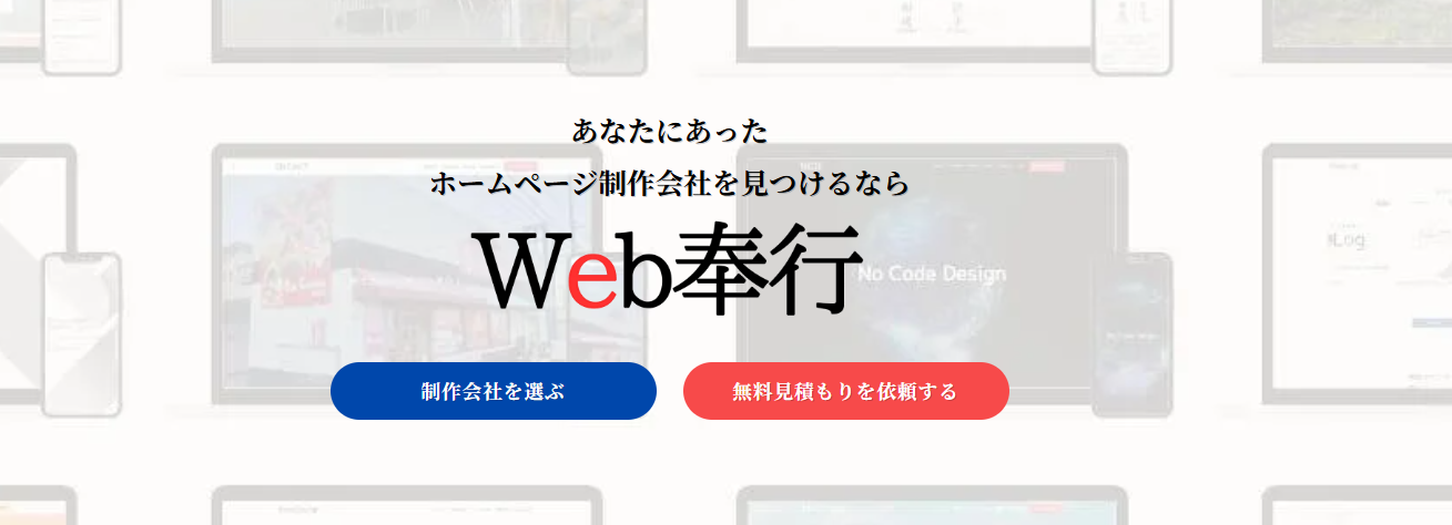 全国のホームページ制作会社をまとめたWeb奉行は、ホームページ制作会社の検索・見積もり依頼を行うことができるサービスです。比較検討をしたい場合などにおすすめです。