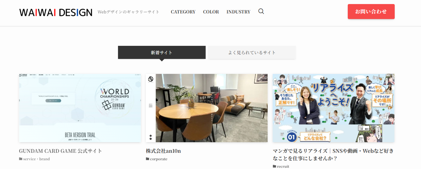 WAIWAI DESIGNは、Webデザインのギャラリーサイトです。高品質なデザインのホームページを検索したい場合におすすめです。