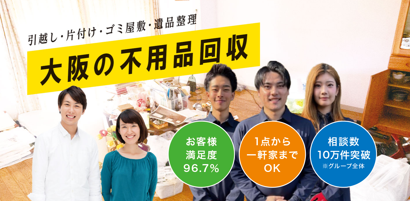 大阪市の不用品回収はもちろん、遺品整理や生前整理、ゴミ屋敷片付けや汚部屋清掃、ハウスクリーニングなど、大阪府の不要品のお困りごとはなんでもご相談ください。引っ越し時や年末の大掃除、新生活の際の処分に必ずお役に立ちます!